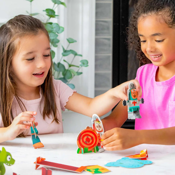 Three characters and nine accessories come to life as kids pop out the pieces, snap them together, and embark on a creative journey. This dragon playset isn't just a toy; it's a learning tool that empowers children to explore STEM principles while having fun.